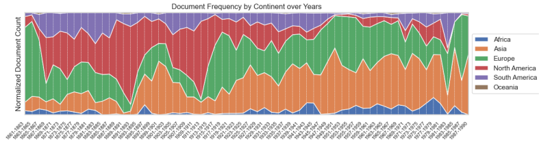 Secondly, text analysis of the titles proves that 20th-century FRUS strongly emphasized Europe, but that increasing region specificity might make it less searchable than other geographic designations. For example, Asia, Africa, and the Americas scored best on name consistency. FRUS labels East Asia as “Far East,” and the Americas are called “American Republics.” Africa is referred to as a whole continent rather than individual countries. Scholars can debate on how accurate these descriptors are, but what they lack in nuance, they make up for in consistency.