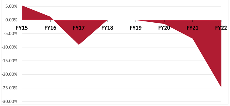 Figure 3. Collections Budget Percentage Change Fiscal Years 2015–2022