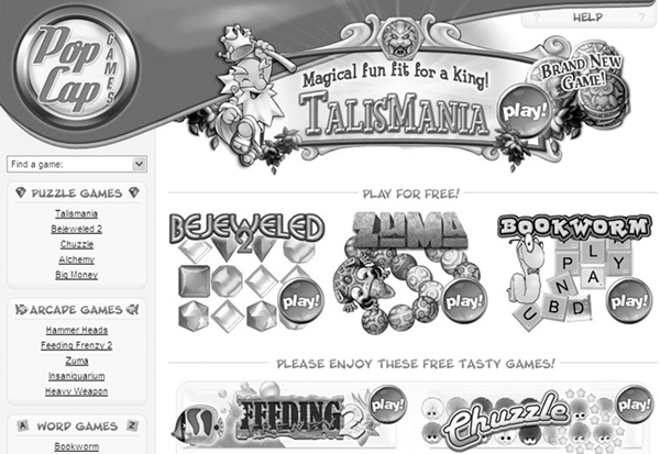 PopCap games can be accessed via the Web at http://popcap.com. |