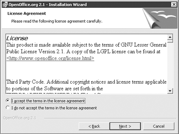 The OpenOffice.org Windows installation process is not difficult. |