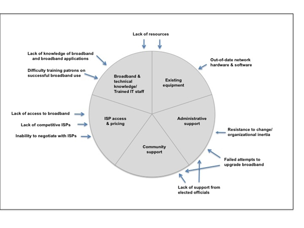 - difficulties in educating patrons on how to use new broadband-based services successfully, which can be affected by both knowledge and economics as institutions may not have staff available for such training