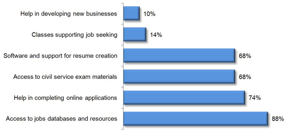 The 2010–2011 Public Library Funding and Technology Access Survey report details a number of ways in which rural libraries provide key services for job seekers, especially as the job search goes more and more online (figure 3.4).21