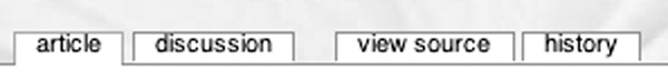 Tabs of a MediaWiki Page: article, discussion, view source, and history. |