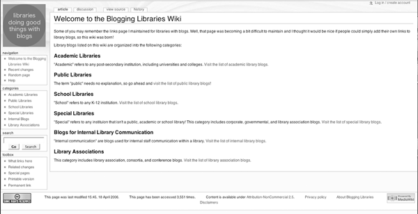 Blogging Libraries Wiki, www.blogwithoutalibrary.net/links/index.php?title=Welcome_to_the_Blogging_Libraries_Wiki |