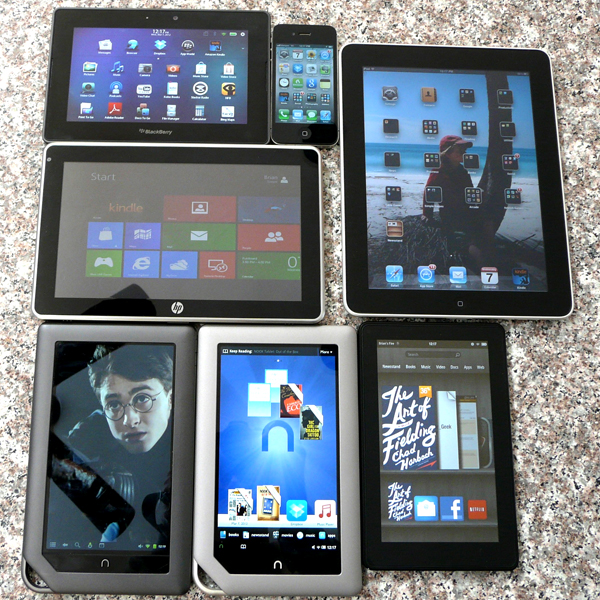 E-reader devices. Image by Brian Sawyer, www.flickr.com/photos/olivepress/6816024608, CC BY-NC-SA 2.0. |
