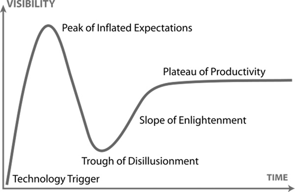 Representation of the Hype Cycle (Wikimedia Commons). |