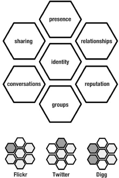 Gene Smith's diagram of social software building blocks and examples of current networks and their principal features. |