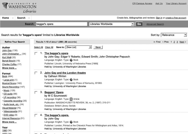 University of Washington's WorldCat Local implementation. Accessed May 2008. |